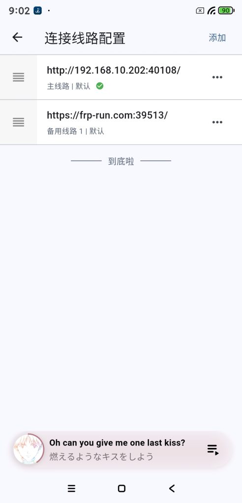 不难发现,软件主页的 Navidrome 下方有一个“主路线”标签——备用路线功能也是会员才有的。目前用下来,大致逻辑推测是这样:第一个被添加的路线会被认为是主路线,后面添加的则是备用路线。主路线连接失败时会自动切换至备用路线,也可以手动切换路线。还可以单独为不同路线设置音频码率。看起来是个不错的功能,在家里直连内网流播,在外面连穿透地址转低码率流播还能省流量。不过我并没有这种需求,所以也并没有切实体验过。